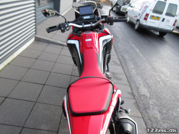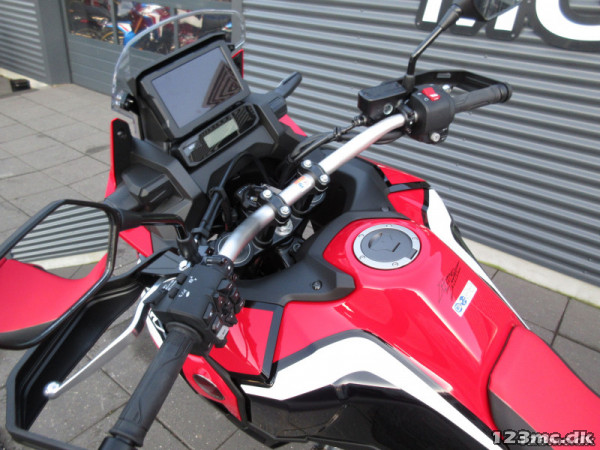 Så er den her den nye crf 1100...Vi har fået 4 stk i første omgang..Husk vi bytter meget gerne..Vi hjælper gerne med en god og billig finansering ..Ørken klitter, barske bjergkanter, skovstier - hvad end du vil udforske, så tag den nye Honda Africa Twin. Lettere, med en 1100 kubik motor og aggressivt off-road design er den mere kraftfuldt, kompakt og smidigere end nogensinde. Nyd den intense og det knitrende output fra konkurrence-stil udstødningen. Definér selv din kørestil med et komplet sæt, der kan tilpasses køretilstande. Hold forbindelsen gennem en avanceret TFT-touchskærm i fuld farve og integreret Apple CarPlay®. Africa Twin har også dobbelt LED-forlygter med DRL, hjørne ABS / ESS og cruise control. Pres dig selv, tag nye udfordringer op. Med den nye Africa Twin er dine eventyrer ubegrænsede., s
