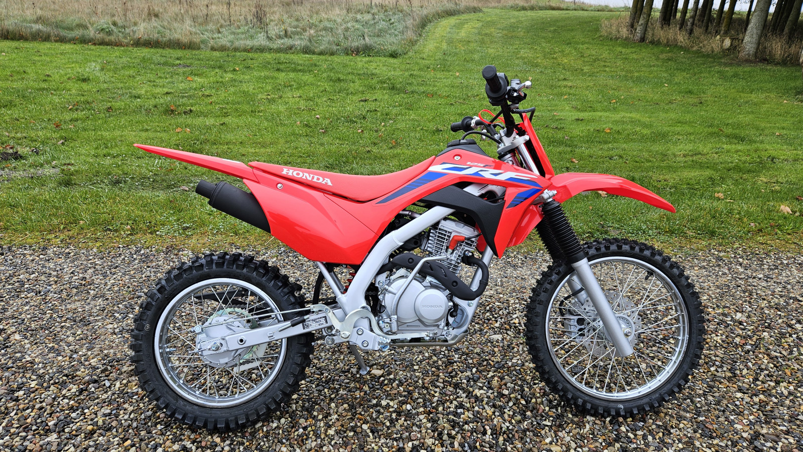 Som CRF110F har CRF125F el-start, og hjulstørrelsen er 17 tommer for og 14 tommer bag.