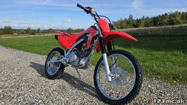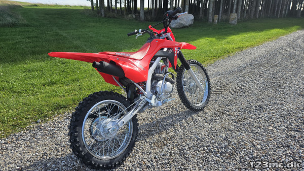 Som CRF110F har CRF125F og FB el-start, og hjulstørrelsen er 19 tommer for og 16 tommer bag.