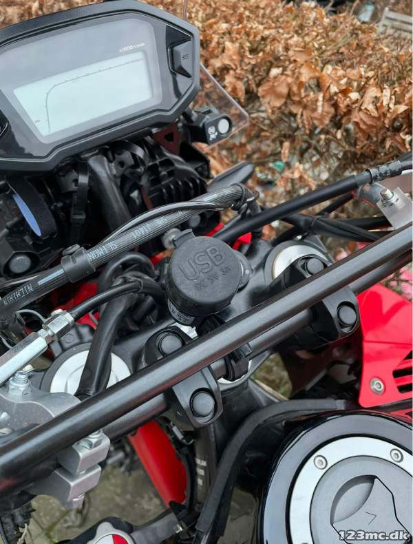 Eftermonteret gear-indikator, USB-udtag og Garmin Zumo mount.