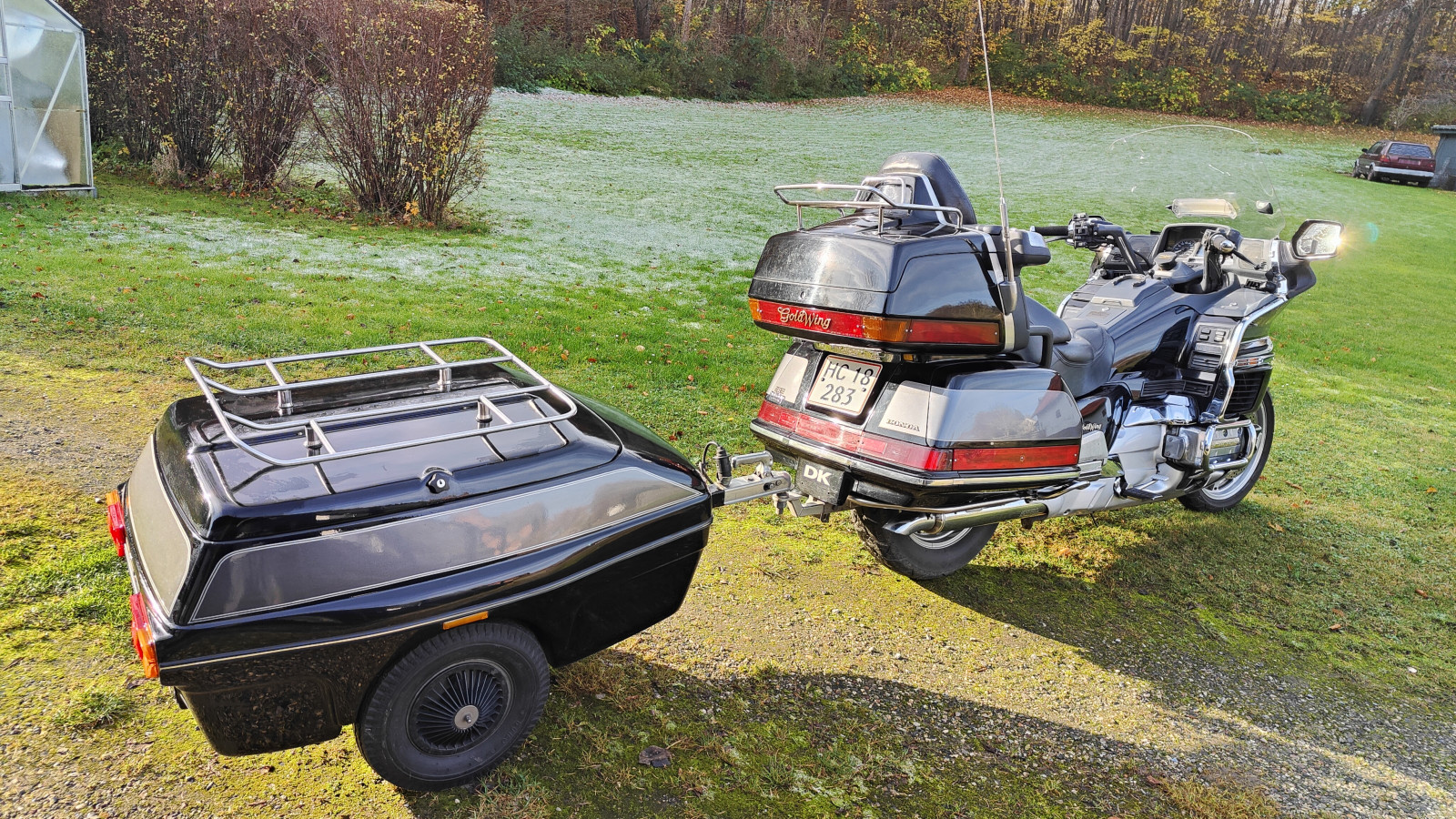 fin og velholdt goldwing, sort / grå. køre fantastisk sælges med trailer. antenner flagstænger armlæn mm haves.