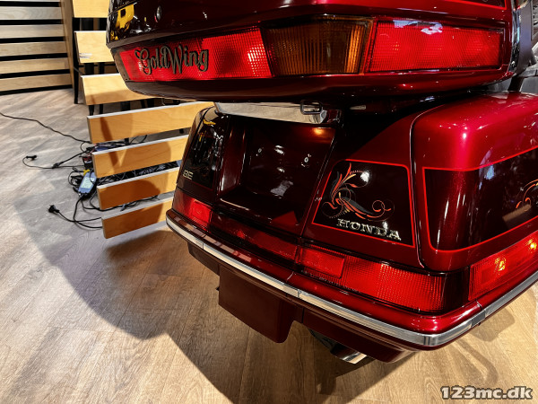 Udstyret med indfarvede sidetasker og topboks, som giver stor bagagekapacitet og et flot samlet udtryk. Monteret med ryglæn til både chauffør og passager for ekstra komfort. Derudover radio med højtalere, fartpilot og flere touringdetaljer, som gør motorcyklen ideel til lange rejser. En velkendt og komfortabel Goldwing med masser af udstyr.