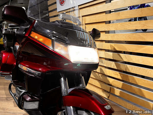 Honda GL 1500 Goldwing fra 1995 i rød lakering med mange flotte detaljer. En klassisk touringmotorcykel kendt for høj komfort og stabilitet, velegnet til lange ture og afslappet cruising.
