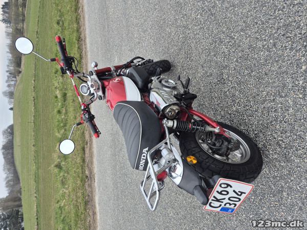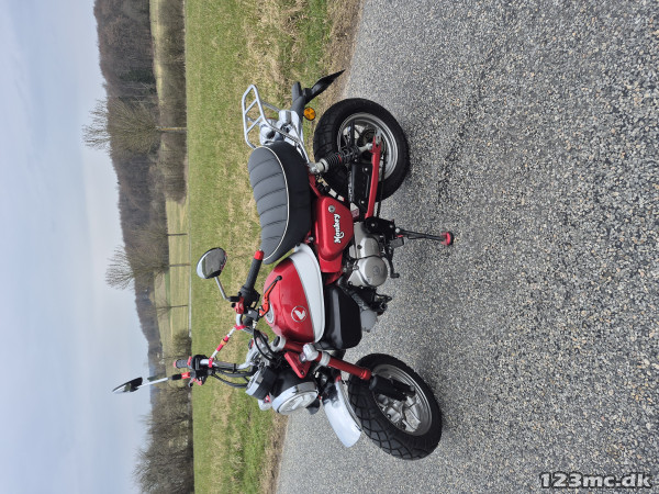 Super velholdt og velkørende honda monkey z125 fra 2019 kun kørt 7020 km ,4 gear, topfart 105 kmt.,mange fede detaljer røde håndtag og spejle, støddæmpere skiftet som kan bære en voksen samt udstødning dobbelt med federe lyd ,alle originale dele haves ,er serviceres med ny olie og tændrør.