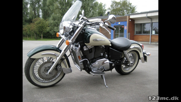 VT 1100 Shadow C3, sjælden model produceret i USA. Honda blev sagsøgt af Harley fordi den ligner og lyder som en Harley bare i Honda kvalitet. Stået i opvarmet garage, så den står næsten som da den forlod fabrikken i 1998. Nysynet.