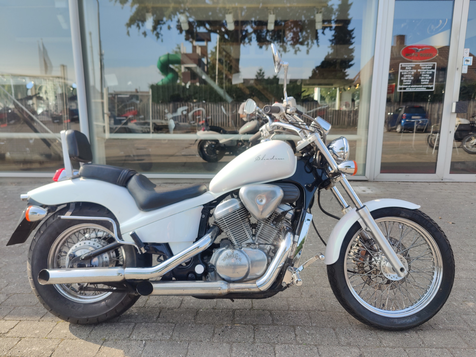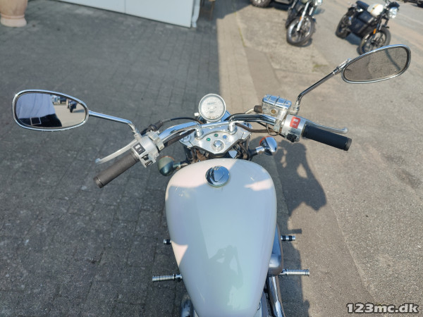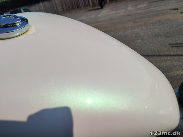 Perlemorshvid, Chrome fremflytter sæt, sissybar, Bitwell nye gummi håndtag, Chrome køler cover, Taskebøjler, Slash cut udstødninger,