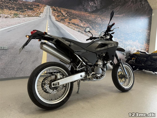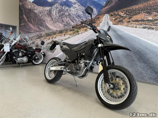 Her får du en utrolig velkørende Supermotard, hvor den egner sig perfekt til de Danske landeveje med den lækre 6-Trins gearkasse!