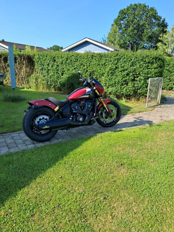 Flot og nyere Indian Scout 101 fra 2025 med alt originalt udstyr og “Vance & Hines” udstødning med elektronisk spjæld monteret (værdi kr. 25.000) Original udstødning medfølger.