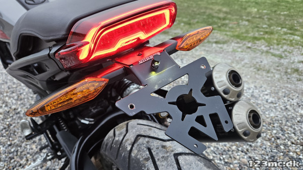 Fuld LED lys for og bag, Baracuda spejle, Acrapovic potte, Protapper styr og nummerpladeholder fra Access design er en del af pakken på denne fede motorcykel, men de originale dele medfølger selvfølgelig - inkl mellemstykke hvis du vil fjerne katalysatoren.