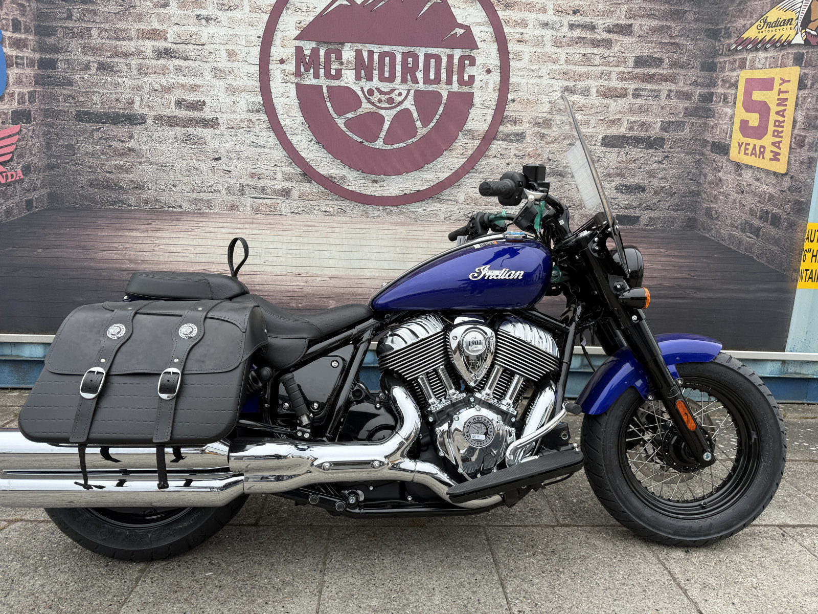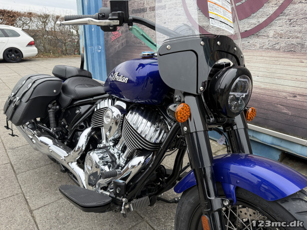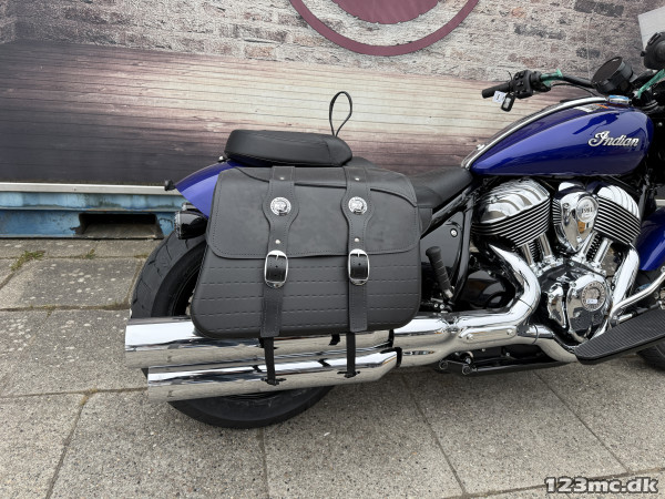 På super chief er der passede og fået udhvilet vind skærm og tasker så den er klar til lang tur smuk og unik motorcykel til en rigtig god pris