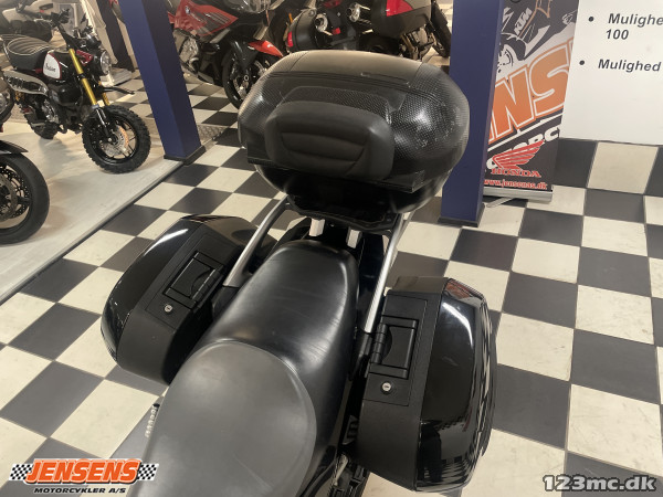 God siddekomfort og sublim motor med tre tasker på er der god plads til tingene på ferie.Med 310kg på vægten er den en voksen mc,men så snart den ruller er den meget letkørt.Kardantrækket er dejligt.