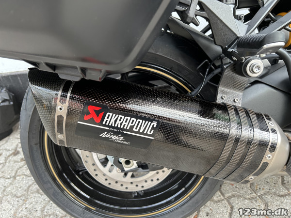 Denne cykel er forsynet med Performancepakke, der bl.a. indeholder sidetasker, 12 V udtag, sædeskal, framesliders, Akraposvic udstødning, tankpad og varmehåndtag.