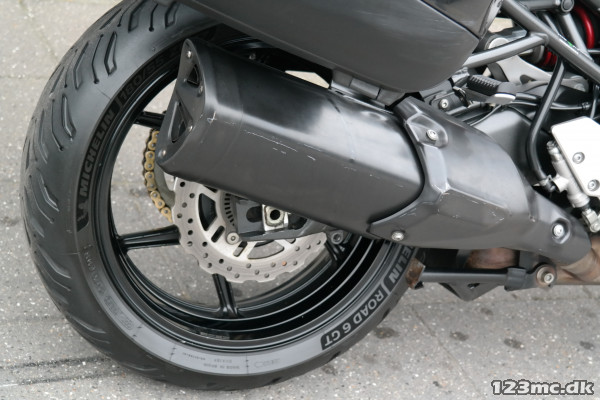 Hvis du er til touring, så sæt en Puig vindskærm på. De fabriksmonterede sidetasker er nok Givi: Men det er racket ikke.