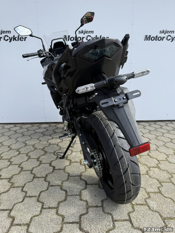 Versys 650 er udstyret med ABS-bremser og TCS (traction control) for tryg og kontrolleret kørsel, gearindikator og slipper kobling for mere flydende gearskift samt LED forlygte og LED baglygte for optimal synlighed. Den elektroniske indsprøjtning sikrer effektiv og responsiv motorydelse – ideelt til både bykørsel og landeveje. Denne model kan også køres med A2-kørekort, hvilket gør den attraktiv for en bred målgruppe.