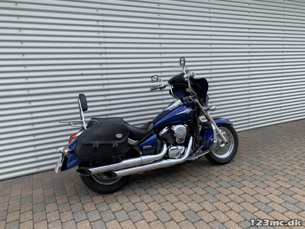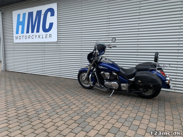 Voksen Cruiser som er rigtig letkørt, lav sædehøjde 710mm. står i flot metalblå. Batwing kåbe / vendskærm, højere styr, motorbøjle, sizzybar / Bagagebærer, sidetasker, Gearindikator.