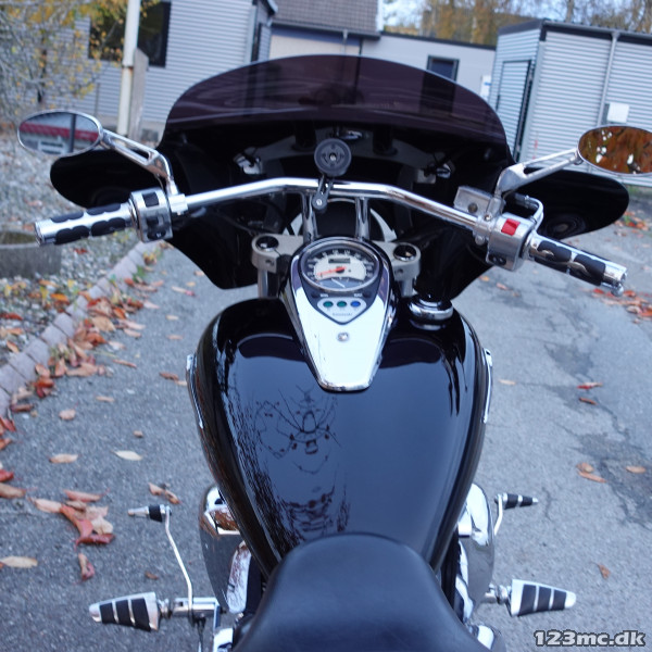 Med det rette sæde, og en lille vindskærm, kan man sidde på den i timevis. Rigtig god touring-cruiser for dem der ikke vil have en af de helt store dyre maskiner, men har det fint på mellemstørrelsen.