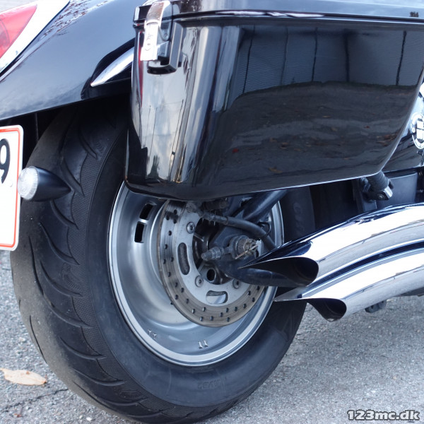 Fuldudstyret touring-cruiser i perfekt stand. Fremflyttersættet er godkendt men det er de smukke og vellydende Vance Hince lydpotter desværre ikke, så cyklen vil blive leveret nysynet med helt nye godkendte Silvertail lydpotter. God byttepris.