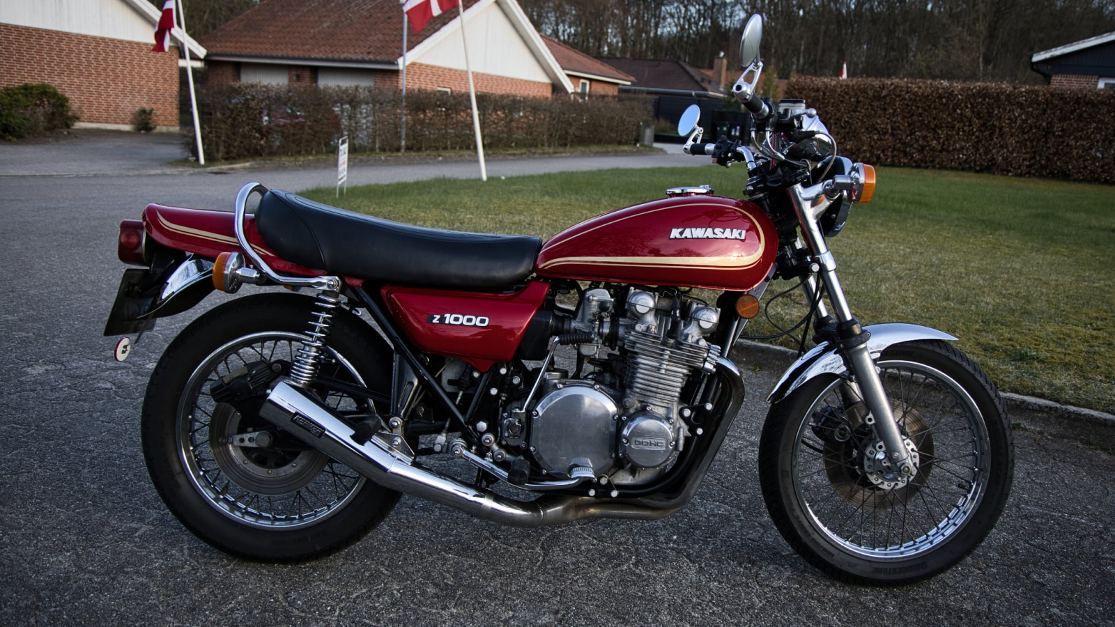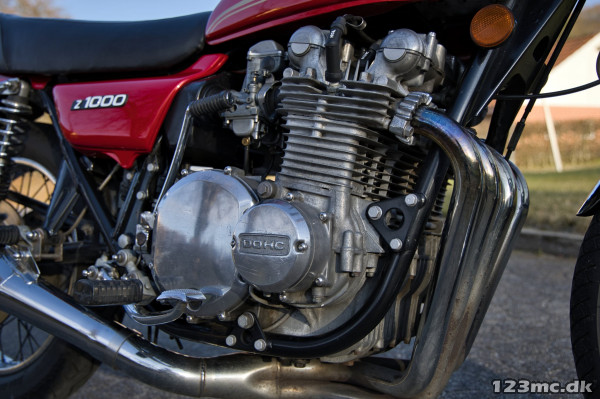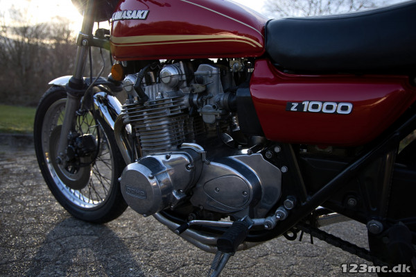 Kawasaki Z1000 A1, årgang 1977, 25000 miles (ca. 40500 km), nysynet. Oprindeligt solgt som ny i US. Indregistreret i DK 2005 og samme ejer siden.