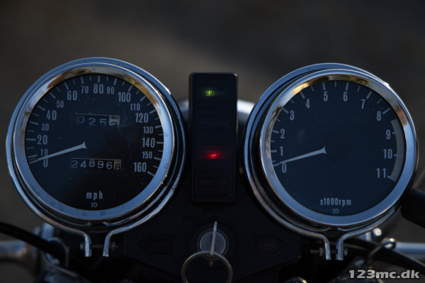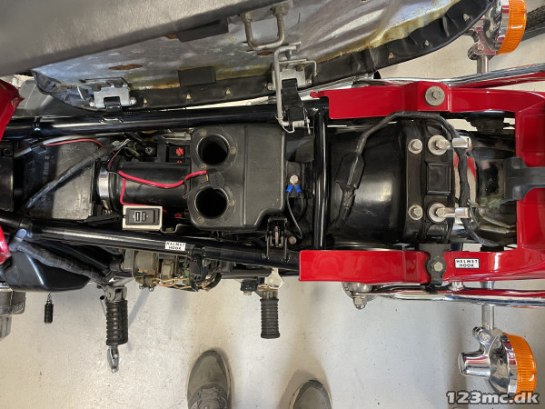 Centerstøtteben (galvaniseret) og originale pulverlakerede sorte covers for speedometer/omdr. tæller haves og medfølger