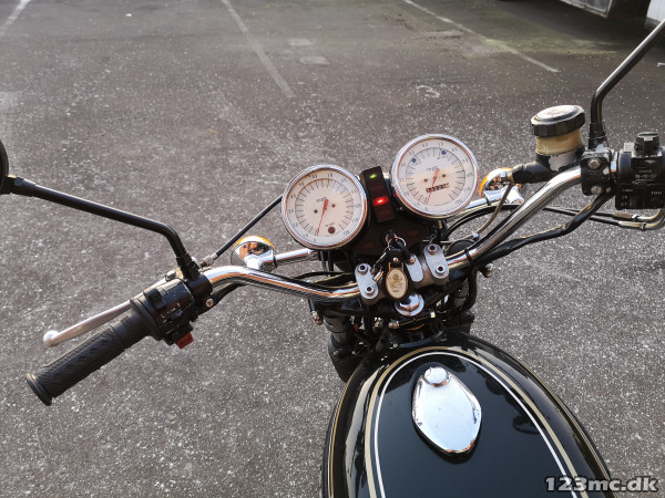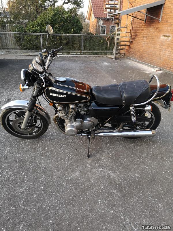 Sjælden klassisk Kawazaki US-model KTZ 1000C 1977 til salg. Har kørt som Police MC i 20år. Herefter importeret til UK 1997. Ejet cyklen siden 2003 i forbindelse med en ustationering i UK. Cyklen står idag som klassisk standard, dvs. Uden vindskærm, floorbord, saddel tasker mm. Sjovt detalje er speedometer med fart kontrol. Farveskift i UK fra Hvid til sort klassisk. Maskinen starter let, køre og geaer perfekt og er i god stand. Stelnummer KZT00C500206. Motor nr. KTZ00AE 030453. Støbte fælge. UK-dokumentation. Fejl glas på speedometer revnet
