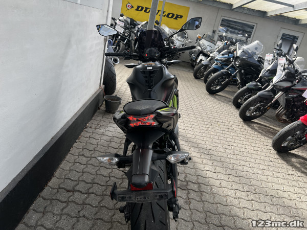 ABS bremser, kørecomputer, gearindikator, startspærre, indsprøjtning, fuldkåbe, tonet/farvet kåbeglas, vindskærm, A2 kørekort muligt, lev. nysynet
