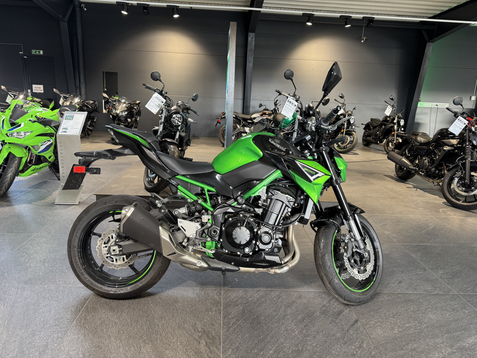 Z900 er udstyret med ABS bremser og 3-trins justerbart traction control, samt smartphone opkobling, så du via din smartphone får en lang række informationer om benzin niveau, km-stand, periodisk service, kørelog og meget mere.