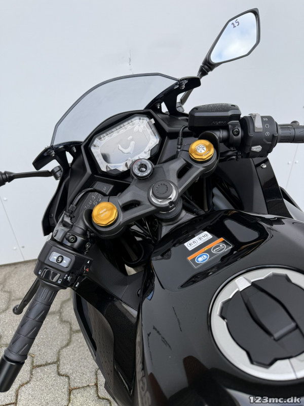 , ABS bremser, TCS (traction control), wheelie control, gearindikator, slipper kobling, 5 års garanti, indsprøjtning, fuldkåbe, quickshift/blip, LED baglygte, LED forlygte, A2 kørekort muligt