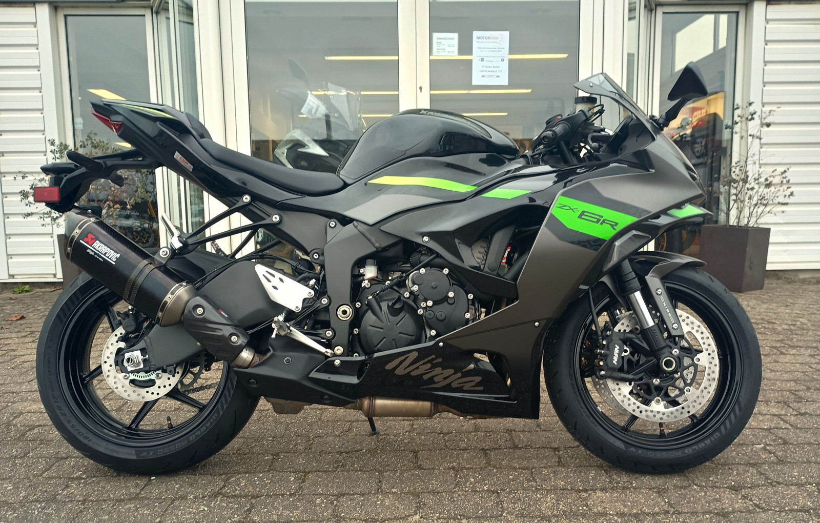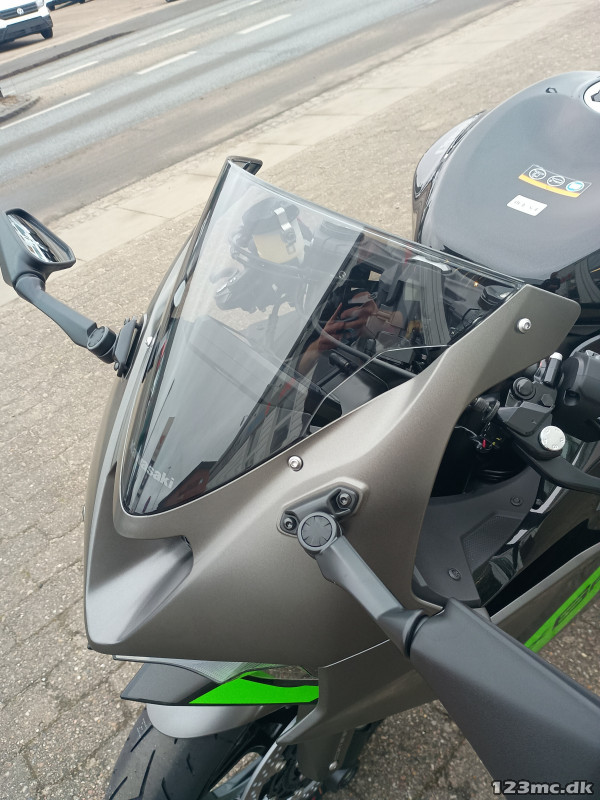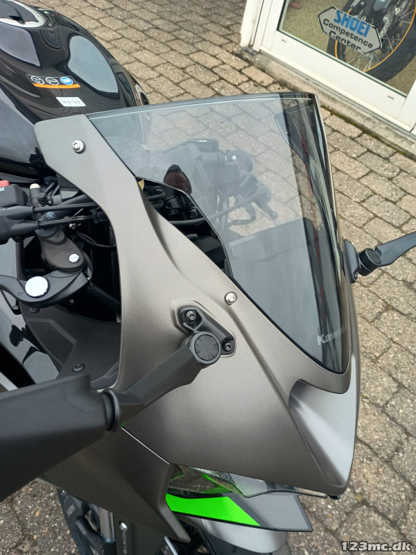 Tonet vindskærm (Standard form) Kr. 1239, Pillion seat cover (Metallic Spark Black) Kr. 2460, Tank pad Kawasaki (Black) Kr. 249, Knee-pad sæt Kawasaki (Sort) Kr. 474, Scratch Resistant Film (Screen Protector) Kr. 267, AKRAPOVIC Carbon exhaust ZX-6R Kr. 13.548.