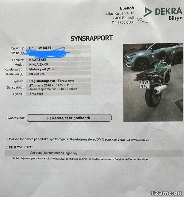 Bemærk, at det er muligt at sammenligne modeloplysninger for Kawasaki ZX6R med din egen MC, hvis du opretter den i din brugerprofil under "Primær MC".