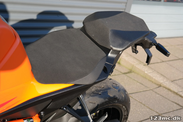 Designet på 2024-modellen er skarpt og aggressivt med aerodynamiske linjer, der både ser godt ud og forbedrer stabiliteten ved høje hastigheder. LED-forlygter, minimalistisk bodywork og en markant tank understreger det kraftfulde udtryk. Ergonomien er også blevet opdateret med en optimeret køreposition, der sikrer komfort, selv ved langvarige ture.