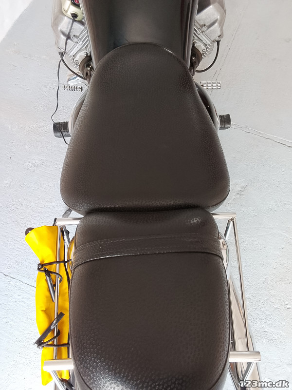 Velholdt og velkørende California Special. Dæk for og bag skiftet v 50.400km ifbm service. Forgaffelpakninger skiftet i 2025. Batteri fra 2025 m ladetilslutning. Lædertasker, større kåbeglas ("Police"), diverse reservedele medfølger. Altid opbevaret indendørs og kun brugt til solskinsture, men for lidt. Ønsker at skifte til noget mindre. Kædelås kan medfølge. Olieskift 23/3-26. Alu-nummerpladeholder. Originalt MG overtræk.