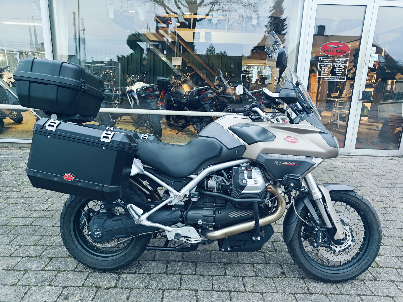 Herunder vises udstyr og tilbehør, som passer til Moto Guzzi Stelvio 1200 NTX. Produkterne kan købes hos forhandleren, som sælger den viste motorcykel.
