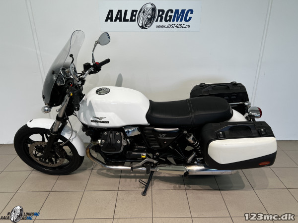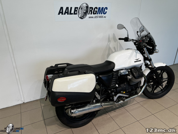 Moto Guzzi V7 er en klassisk inspireret motorcykel med italiensk charme og karakter. Den er udstyret med en luftkølet 744 cc V-twin motor, der leverer omkring 49 hk – nok til en afslappet og autentisk køreoplevelse. Den er kendt for sin pålidelige teknik, retrodesign og gode køreegenskaber. Perfekt til både bykørsel og længere ture, med en karakteristisk lyd og ægte "old school" følelse.