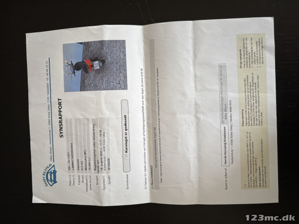 Omregistrering via ejerskifte app. Husk en styrthjelm hvis du ønsker at prøvekøre den.