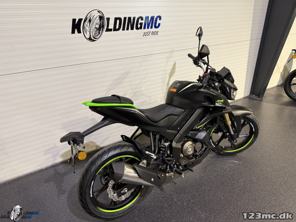 QJ Motor SRK 125 S er en ny og sporty A1-naked bike med 125 cc motor, ideel til både bykørsel og pendling på landevej. Med en 15 hk motor, 6-trins gear og et moderne TFT-display får du en køreoplevelse, der er både engagerende og praktisk i hverdagen. SRK 125 S har full LED-lys, ABS-bremser og en let, håndterbar vægt, hvilket gør den perfekt som første store motorcykel eller pendlermodel. Et godt valg for dig, der vil have en stilren og teknologisk veludstyret 125 cc motorcykel.