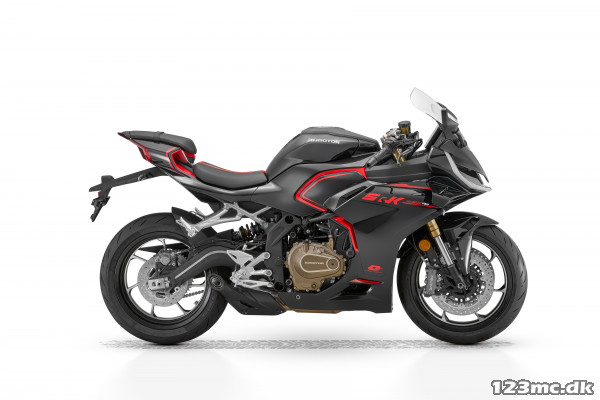 SRK 421 RR er skabt til dig, der vil have ægte supersport-følelse i et let og tilgængeligt format. Det skarpe, aerodynamiske design, den aggressive kørestilling og den levende motorkarakter giver en køreoplevelse, der føles som race – hver gang du drejer gashåndtaget.