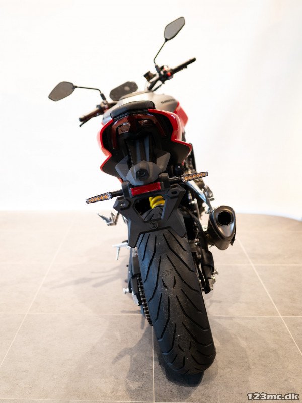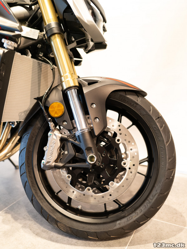 De lette 17” multiegerfælge og Pirelli-dæk (120/70 foran og 180/55 bagpå) sikrer perfekt balance mellem greb og smidighed.