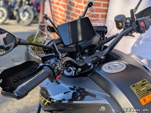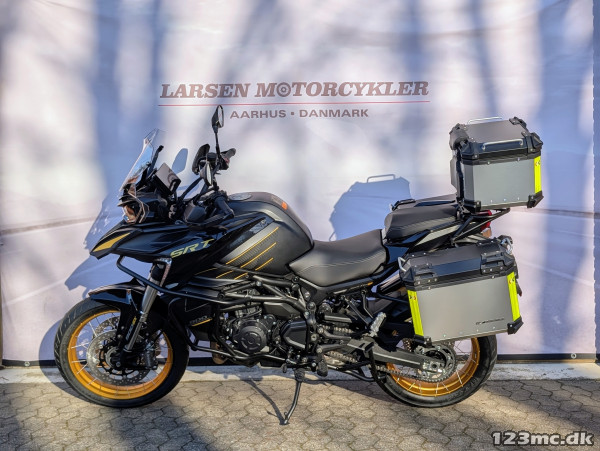 Den stærke twin-motor leverer masser af moment og jævn kraft hele vejen gennem omdrejningerne. Marzocchi-affjedring og Brembo-bremser sørger for kontrol og selvtillid i alle situationer, mens moderne udstyr som TFT-display, cruise control, quickshifter, dæktryksmåling og blind-spot-assist gør hver tur lidt mere luksuriøs.