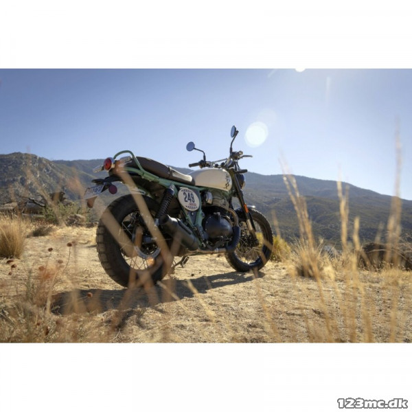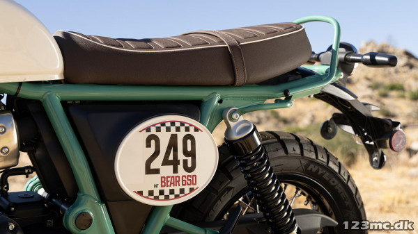 Designet og farverne trækker på 60’er-scramblerens rå enkelhed, men med moderne teknik, 650 cc parallel twin og alt det, der gør Bear-modellen nutidig.