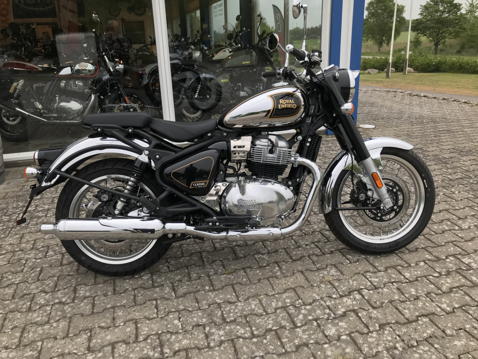 Fri lev til din adresse Jan-feb-Marts-Jylland-fyn-Sjælland, Royal Enfield Classic 650 Black Chrom, 3 år-s garanti., ABS bremser, USB tilslutning, centralstøtteben