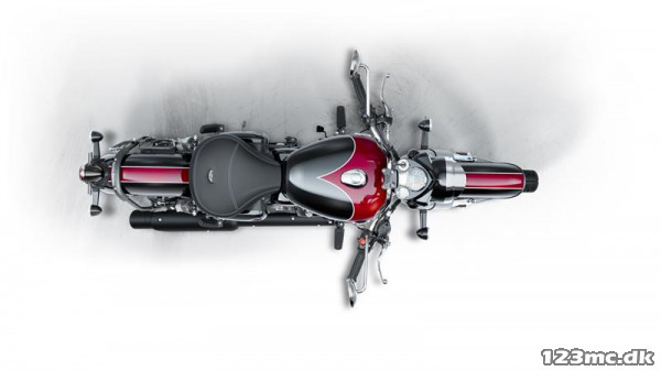 Den dybe rød-sorte Rave Red-lakering kombineret med cremefarvede detaljer og sorte kromskærme med rave røde fælge, giver motorcyklen en eksklusiv, næsten håndbygget karakter. Det er en maskine, der vækker smil – både hos føreren og alle, der ser den køre forbi.
