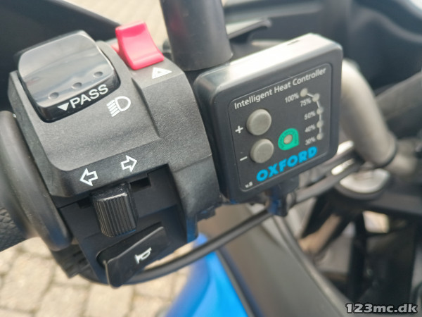 Puig vindskærm med deflektor, varmehåndtag, motorskjold, motorbøjler, Givi topboks og sidetasker, håndbeskytter, tankpad, USB-strøm udtag og side støttebensplade.