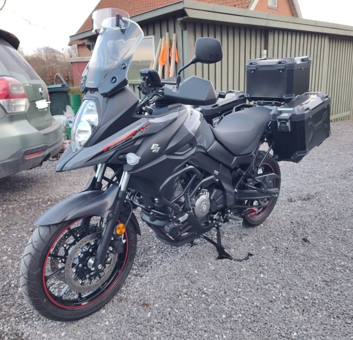 Køb en med handgurds - de tager enormt meget vind og forhindre kolde fingre. Der fås uendeligt meget udstyr til en V-strom og FB forummet er enormt aktivt og nyttigt når man har brug for råd.