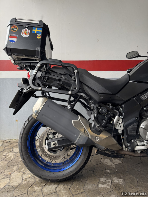 Denne Suzuki DL650 XT kommer med fuld original aluminiums taskesæt, fuld service historik og vinteropbevaring hos Enghave Motor alle årene.