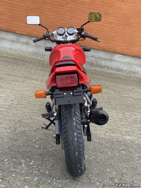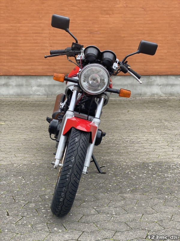 Let kørt mc med 48 Hk og som kan drosles til 34 Hk til mellem mc kort , og desuden sænkes hvis det kniber med ben længden