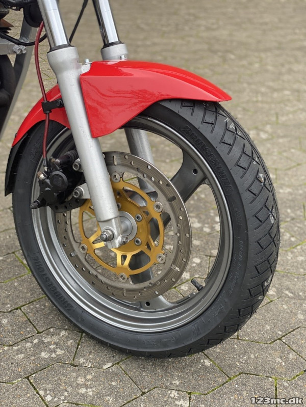 2-cylindret luftkølet 4-takts motor med 2 overliggende kædetrukne knastaksler, 2 ventiler pr. cyl. Maks. moment: 41,2 Nm ved 5800 o/min. 2 stk. 34 mm mikuni karburator. Kædetræk, Skivebremser både for og bag, Dobbelt lukket rørramme stel i stål. Teleskop forgaffel, Svinggaffel med monodæmper i bag.