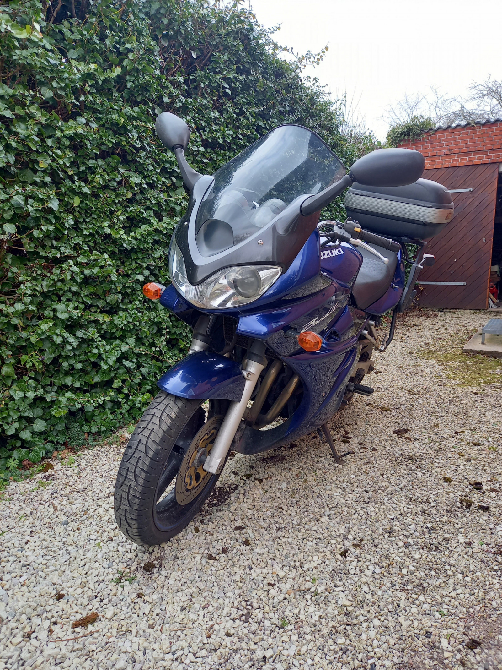 Bandit har, lige som mange andre MC, ikke mange aflægnings muligheder til feks styrthjelm. En central støtte ben vil være godt.
