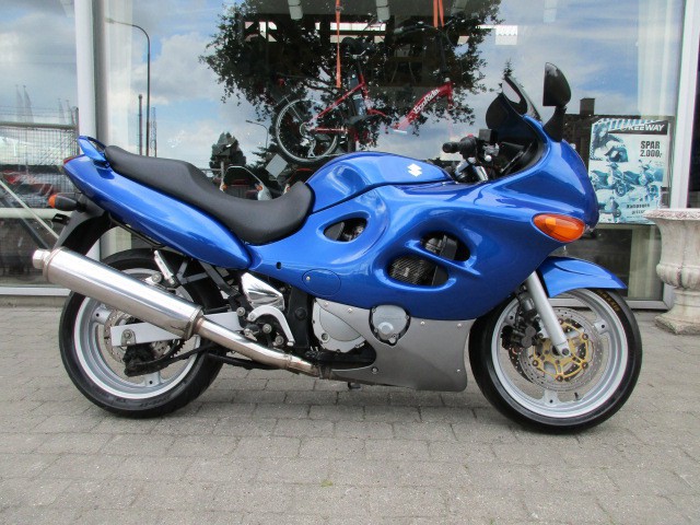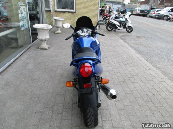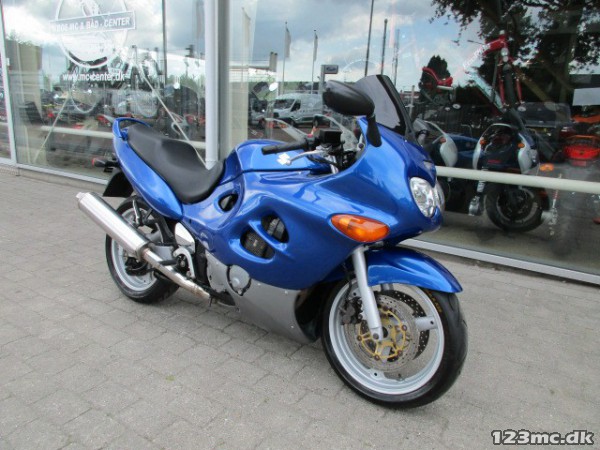 SUZUKI GSX 600 F Ccm.: 600 Farve.: Blå Årg.: 1998 Km.: 38.000 KAN KØBES FOR KR. 799.- PR. MÅNED UDEN UDBETALING VIA FINANS. Blå og i pæn stand. Monteret :sort kåbe glas,599 Ccm, 78 HK, 0-100 km/t på 4.5 Sek. 24.7 km/l. Topfart: 210 km/t,
