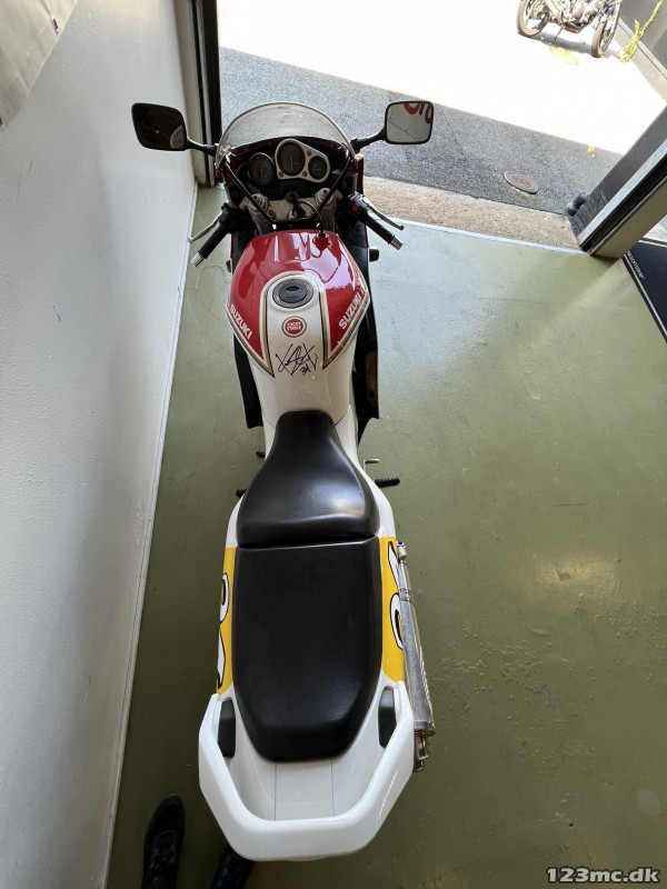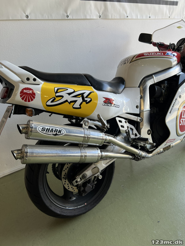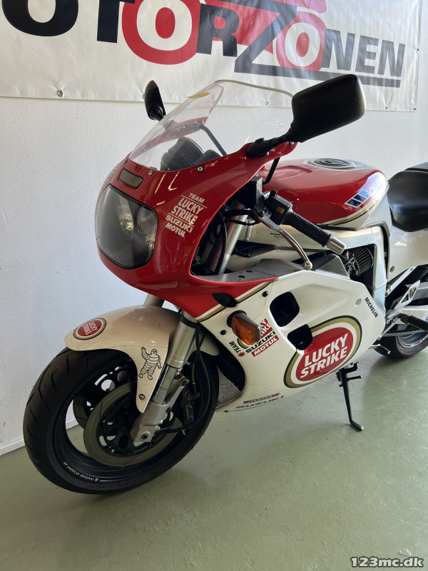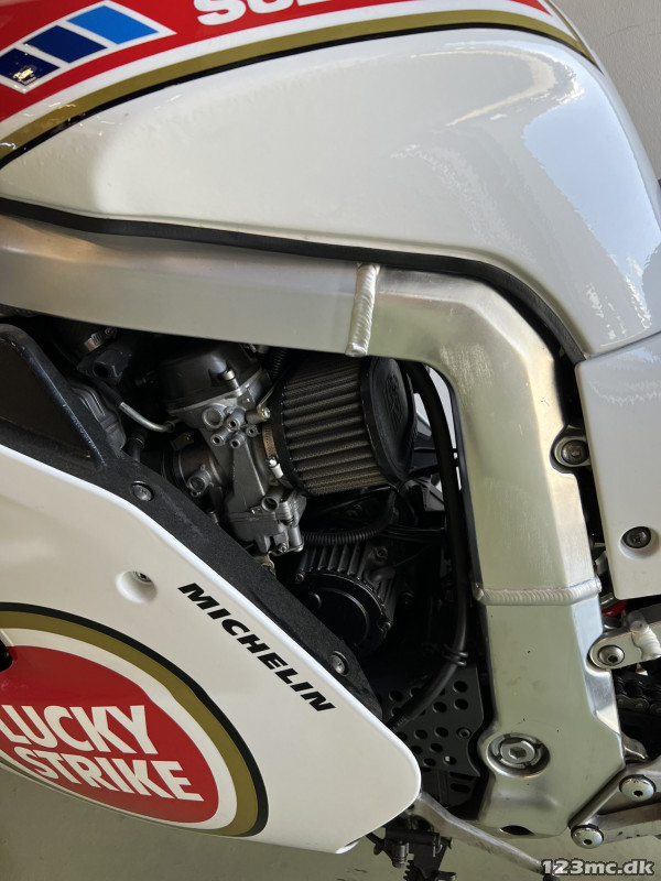 Lynende hurtig, selv idag. Fed cykel med cult status. Cyklen der bragte Suzuki forrest i våbenkapløbet i literklassen i midt 80'erne. En banebrydende cykel der har samlerstatus idag. Let cykel for sin tid kun 195 kg tørvægt. 130 heste.