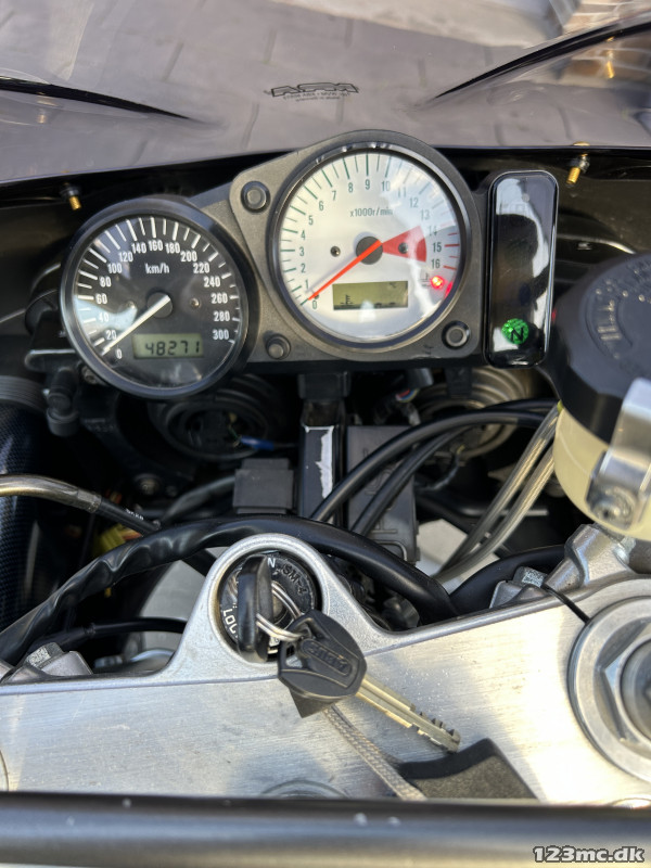 Den har fuld Leo Vince rustrfri udstudning med titanium potte, K&N luftfilter og rullet ind ved FV Motor.